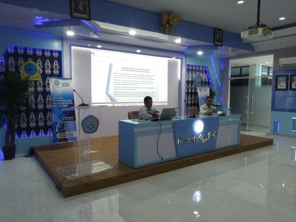 Pada Hari Rabu tanggal 9 November 2022 pukul 13.00 WIB, bertempat di Ruang Seminar Lantai 2 Gedung Rektorat, Lembaga penjamin Mutu Universitas Hang Tuah (LPM UHT) mengadakan Sosialisasi Instrument Monev SPMI kepada Semua Fakultas ( Prodi ) di Lingkuangan Universitas Hangtuah. Acara dibuka oleh Ka.LPM Dr. Drs. Viv Djanat Prasita, M.App.Sc dan disampaikan oleh Kabag. MONEV LPM UHT Sasmito Djati Utomo, S.Sos., M.AP. yang dalam pelaksanaannya dihadiri oleh para Dekan dan Ka.Prodi yang ada di Universitas Hang Tuah Surabaya.