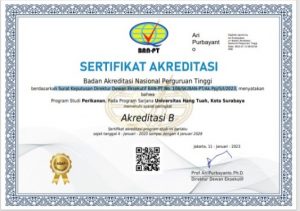 Terima Kasih Atas Dukungan segenap Civitas Akademika FTIK dan seluruh Mahasiswa FTIK Universitas Hang Tuah untuk Program Studi S1 Perikanan Fakultas Teknik dan Ilmu Kelautan (FTIK) Universitas Hang Tuah yang telah meraih peringkat akreditasi “Baik ” berdasarkan Surat Keputusan Direktur Dewan Eksekutif BAN-PT No. 106/SK/BAN-PT/Ak.Ppj/S/I/2023.